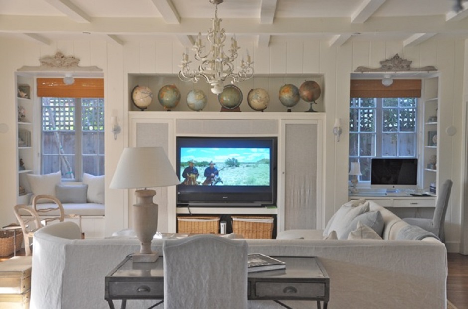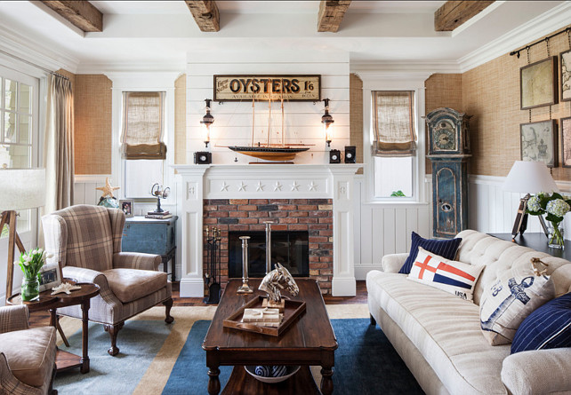 Coastal Home Decorating Ship Model on the Top of Mantel via homebunch