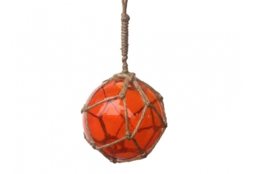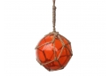 Orange Japanese Glass Ball Fishing Float With Brown Netting Decoration 4"